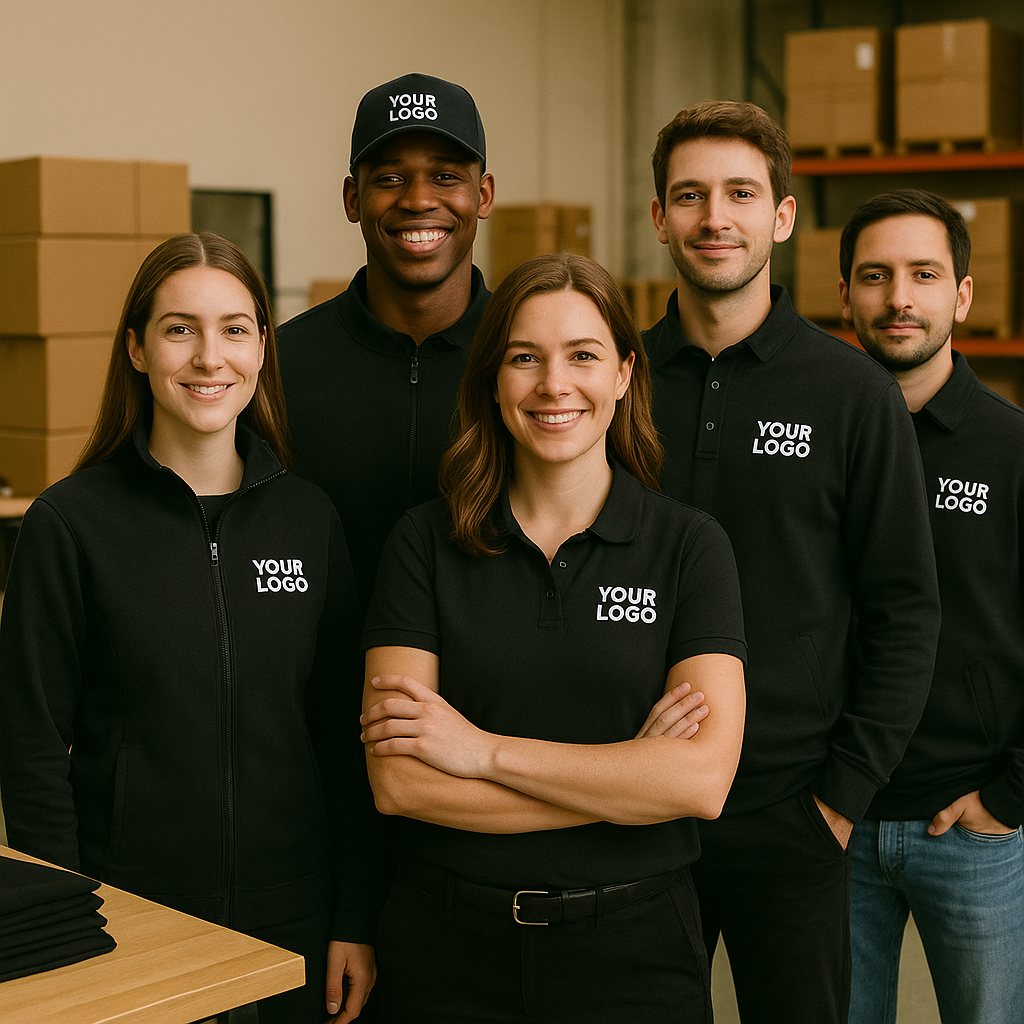 A: Pick a bundle, upload your logo, choose print or embroidery. We make it and ship.